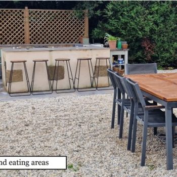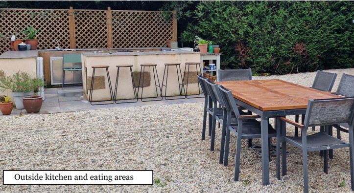 The outside kitchen is fully equipped and ready for you to unleash your culinary flair. In the late afternoon and evening it is sheltered from the direct sun by the backdrop of trees.