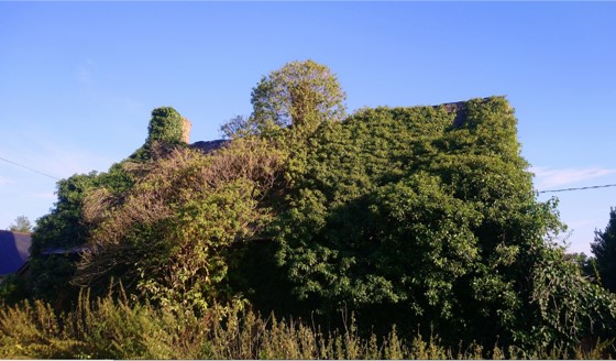 Under the trees and ivy there was a farmhouse! Note the tree in the centre of the roof growing up an old chimney!
